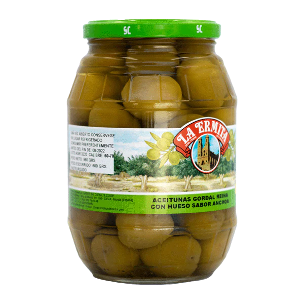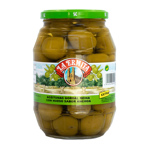 Ogromne oliwki zielone Gordal z pestką w zalewie anchoa. Proste i pyszne. Do wszystkiego.