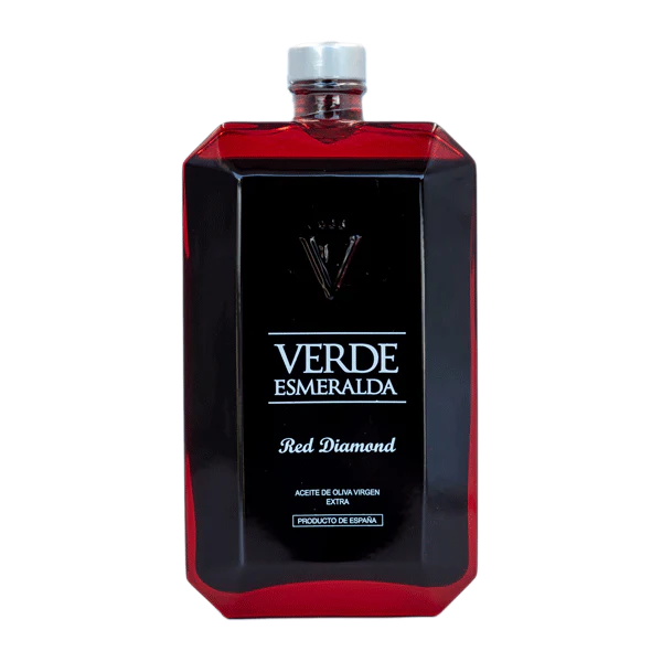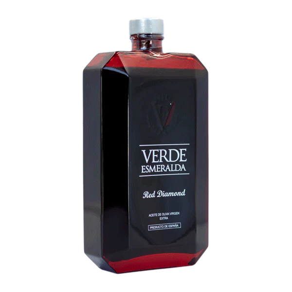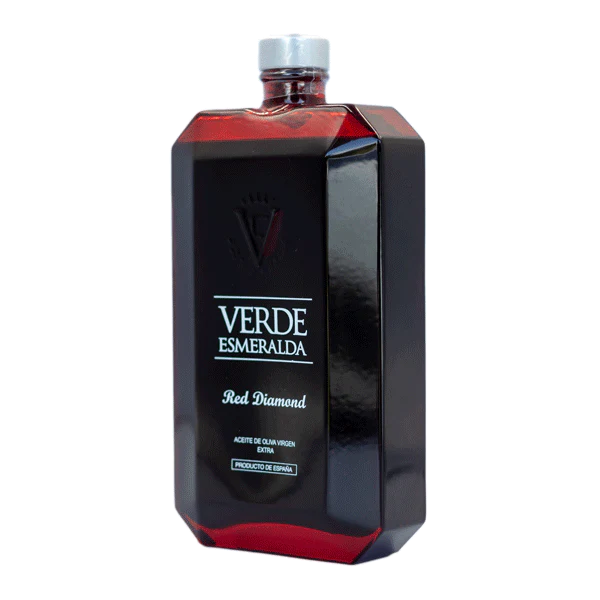 Producent oliw Verde Esmeralda miał jeden cel: wyprodukować najlepszą oliwę na świecie z najwyższej jakości oliwek. W tym celu połączył fachową wiedzę wielu pokoleń swojej rodziny z nowoczesną technologią. Oliwki zbierane są ręcznie i z ogromną starannością. Plantacje prowadzone z najwyższym poszanowaniem natury. Podczas całego procesu, od parodniowego zbioru aż po ekstrakcję oliwy ważne jest utrzymywanie stałej temperatury i dbałość o zebrane owoce. Czerwona Red Diamond to wyrazista, pikantna i pełna smaku oliwa z oliwek odmiany Royal, jednej z rzadziej występujących odmian. Tak wspaniały produkt wymaga wyjątkowej oprawy. Butelki wyglądają jak klasycznie oszlifowane rubiny, szmaragdy i szafiry a każda zawiera prawdziwy eliksir. Oliwy Verde Esmeralda otrzymały wiele nagród na najważniejszych międzynarodowych konkursach.